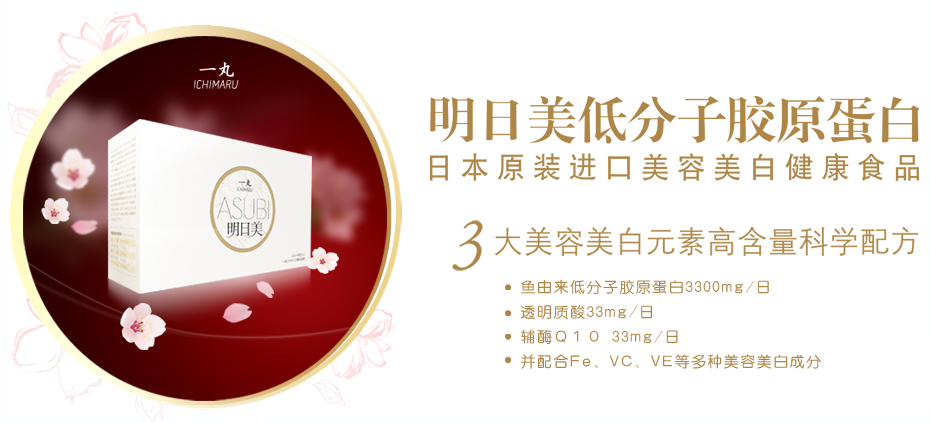 ※成份介绍: 胶原蛋白: 提取于深海鱼类的低分子胶原蛋白。胶原蛋白又称胶原质,是组成各种细胞外基质的聚合物。它与弹力纤维合力构成网状支撑体,提供给真皮层安定有力的支撑,使皮肤保持弹性,饱含水分。明日美中由深海鱼类中提取的低分子胶原蛋白,使肌体更易吸收,回复肌肤弹性。